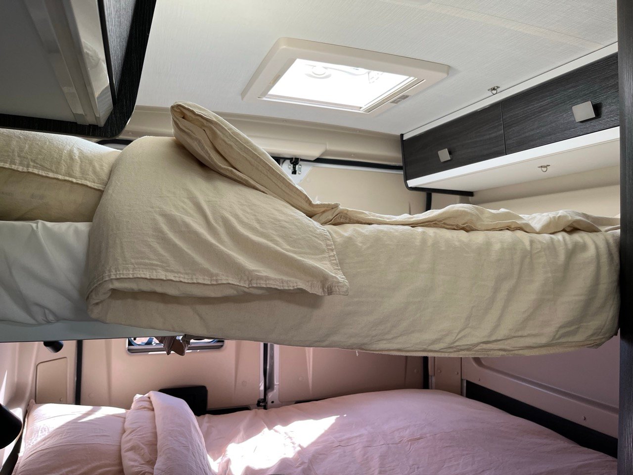 • ⁠Gegarandeerd slaapcomfort voor 4 personen. 2-persoons stapelbed achterin (Verwijderbaar)